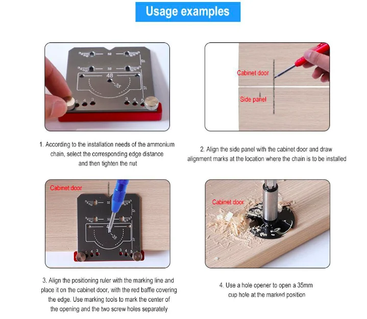 L-HT219 Woodworking 35mm Hinge Opening Locator Set Cabinet Door Hinge Hole Punching Positioning Ruler Opener Divine Tool